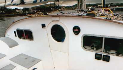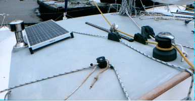 Eclipse, cabin roof- In this view you can see the solar panel and the chimney for the solid fuel heater. |