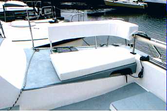 Eclipse, cockpit seats- The seat back is designed to be sat upon while helming, with both feet inboard or astride. It can also be used as a back rest while relaxing seated on the lower cushion. |